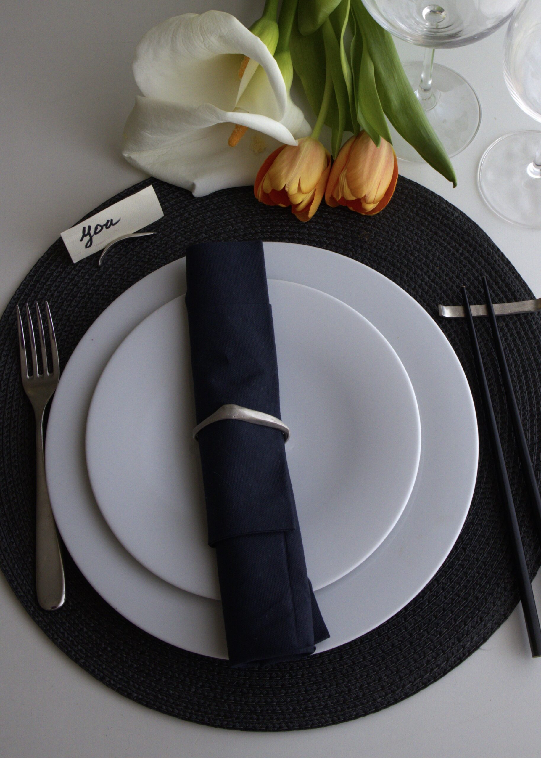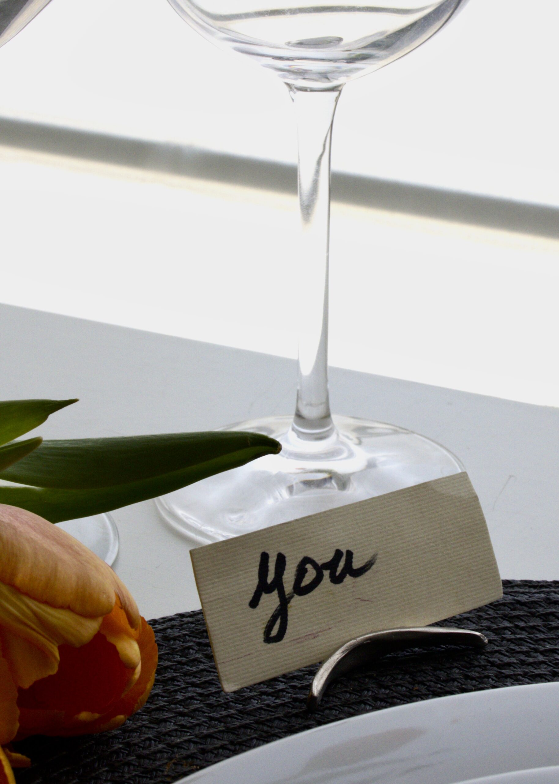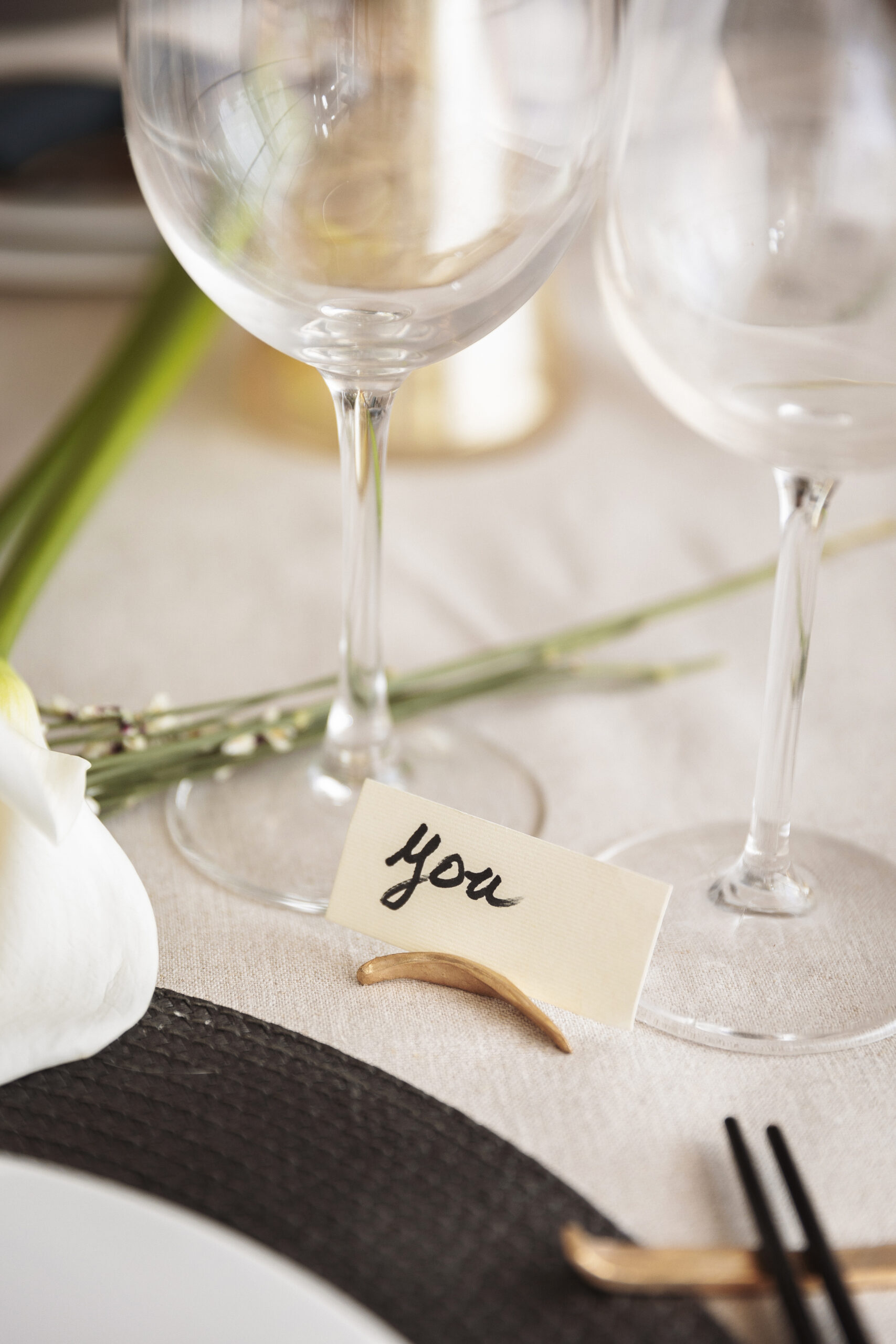 Set di segnaposto realizzati in bronzo con cartoncino in color avorio. Possibilità di finitura anche in color platino.