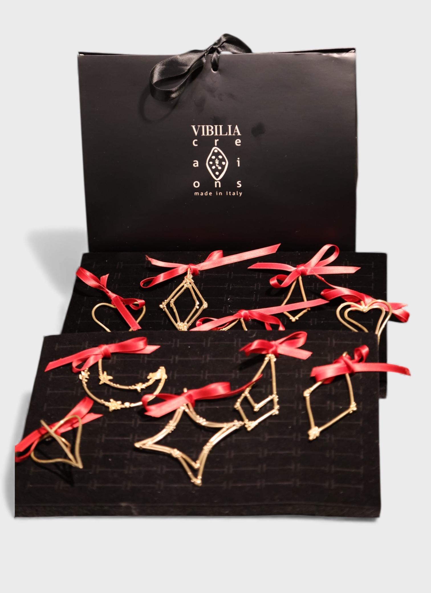 Set composto da 10 decorazioni natalizie: 4 semplici / 3 doppie / 3 tridimensionale